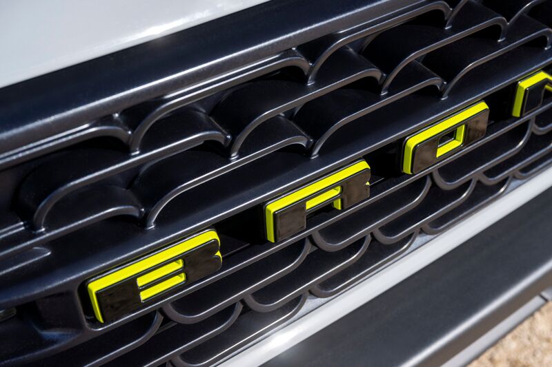 The Bronco RTR is easy to spot thanks to its signature Hyper Lime external accents and "Ready to Rock" grille with integrated lighting. The launch model features Avalanche Gray paint with topographical graphics of Johnson Valley—the famous off-road testing ground where the vehicle was developed. For those who prefer a sleeper look, Ford has confirmed that the lime accents and graphics can be deleted.